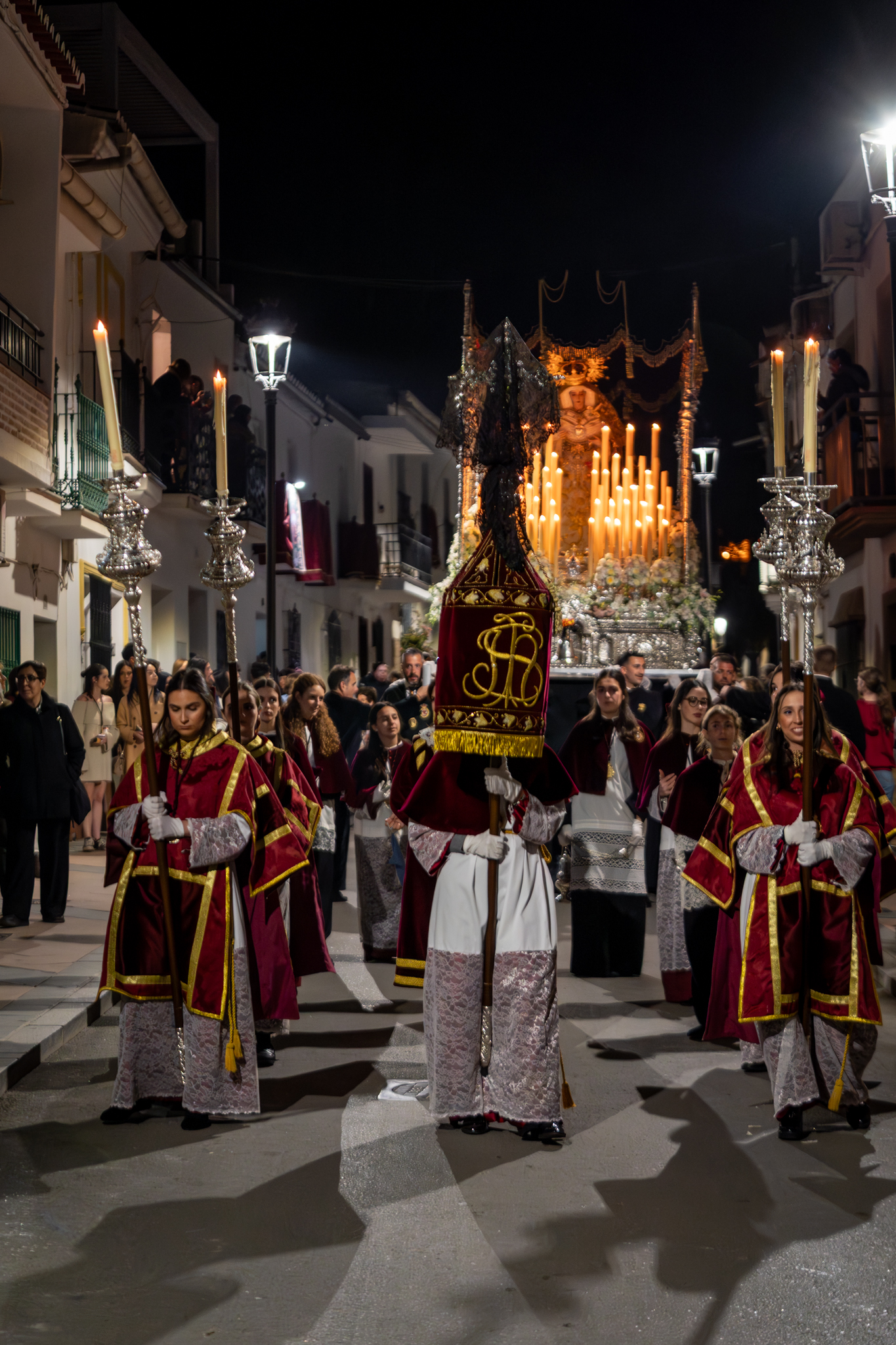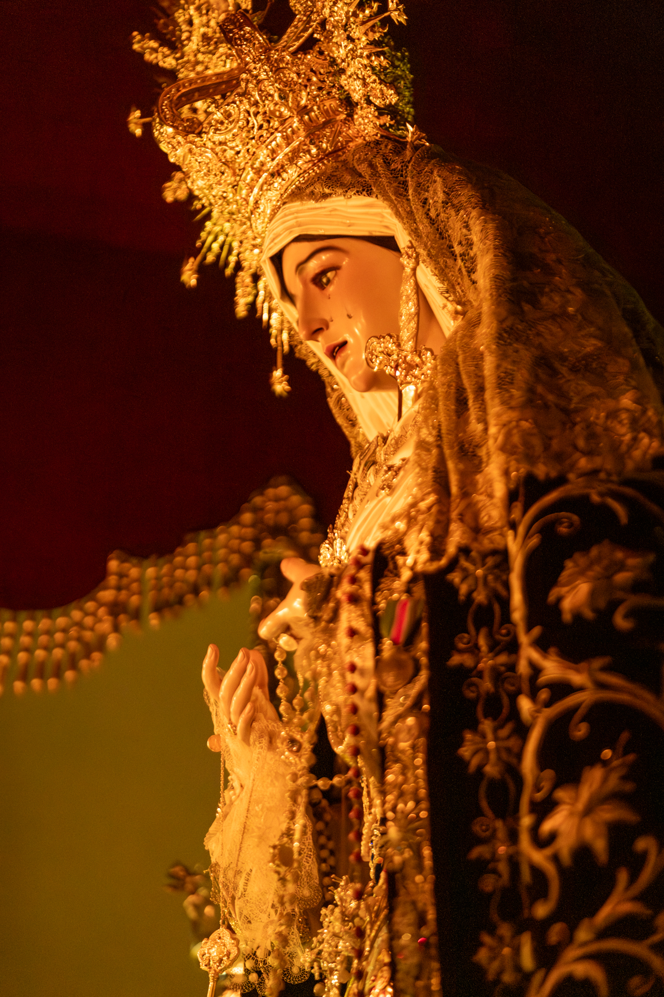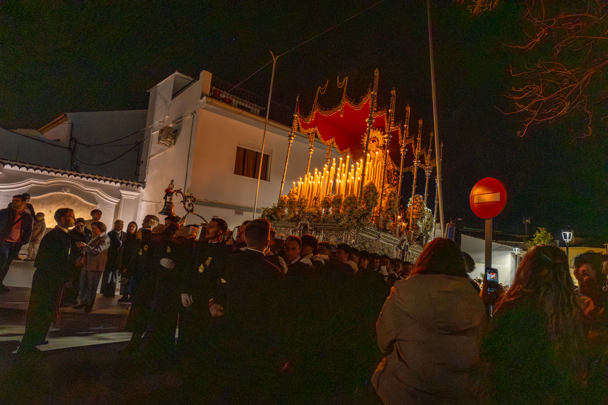 Hubo momento para la saeta y para el pulso, en el paralelo y en el cruce que realizan el Stmo. Cristo del Perdón y la Stma. Virgen de los Dolores y Misericordia en C/ Málaga, y a las puertas de la Iglesia respectivamente. A este último punto se llegaba a los sones de “Encarnación Coronada”, al canto de;