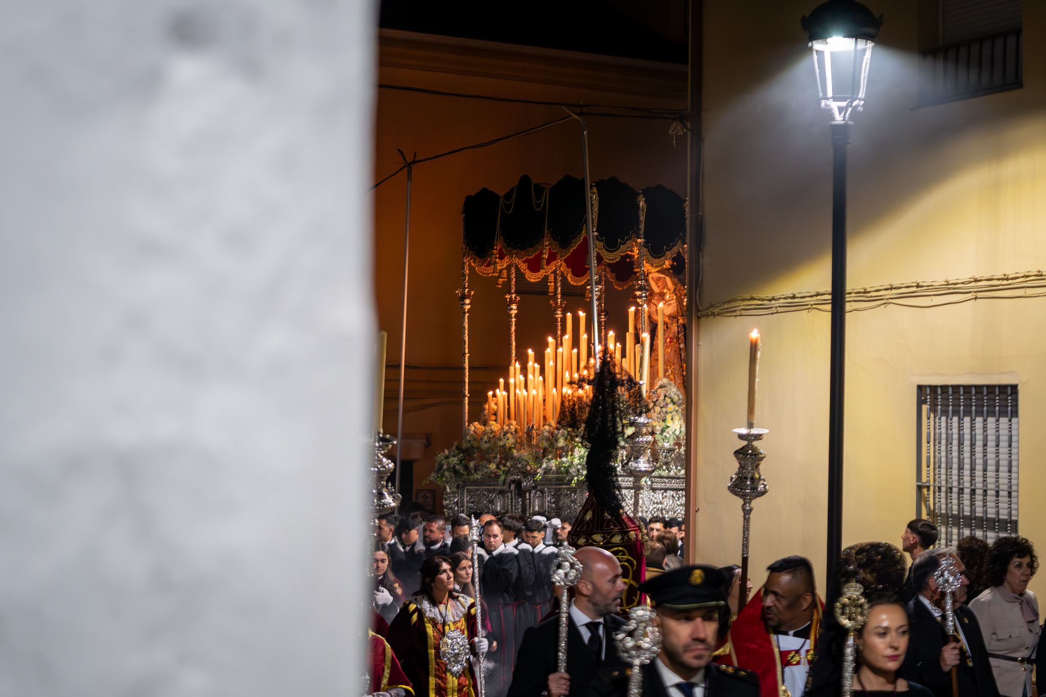 Tras un solemne acto de penitencia, y camino de su Casa Hermandad, María Santísima de los Dolores y Misericordia se despedía de su hijo y procedía a su encierro.