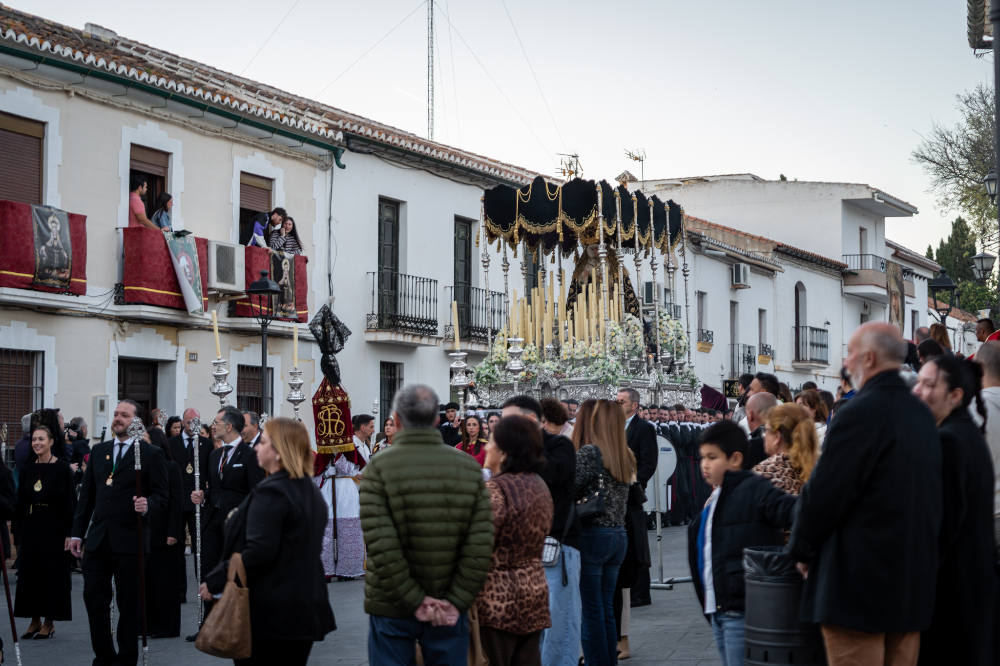 Las Hermandades del Santo Entierro y de la Virgen de la Fuensanta esperaban el paso, las puertas de la Iglesia de San Pedro Apóstol estaban abiertas de par en par esperando el paso de sus Sagrados Titulares, seguía el transcurrir mientras los devotos se iban colocando por el recorrido, especialmente en Puerta de la Guardia, Calle Málaga, Iglesia y a las puertas de la Casa Hermandad para al encierro.
